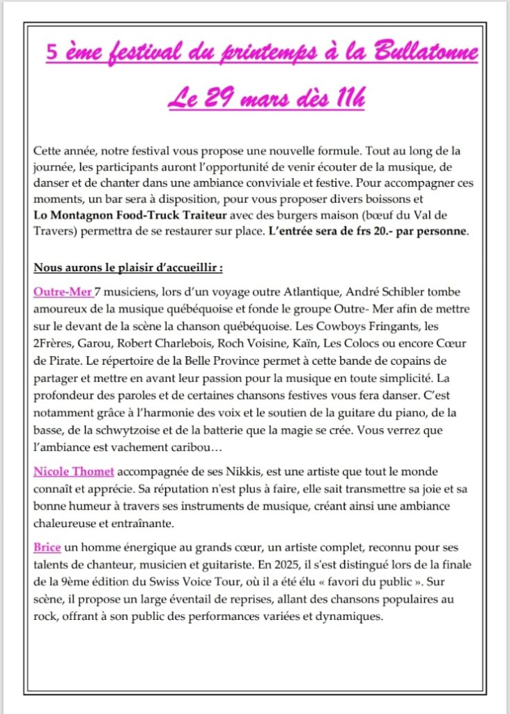 Fermeture le 29 mars 2026 avec le festival, restauration uniquement avec le Food-Truck !